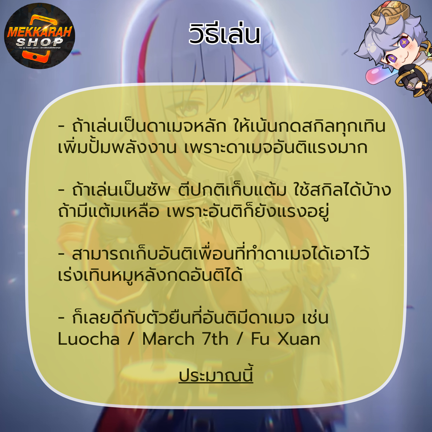 แต่ถ้าเอาไปเล่นเป็นตัวซัพทีม ให้จ่ายสกิลตอนแต้มเหลือก็พอ